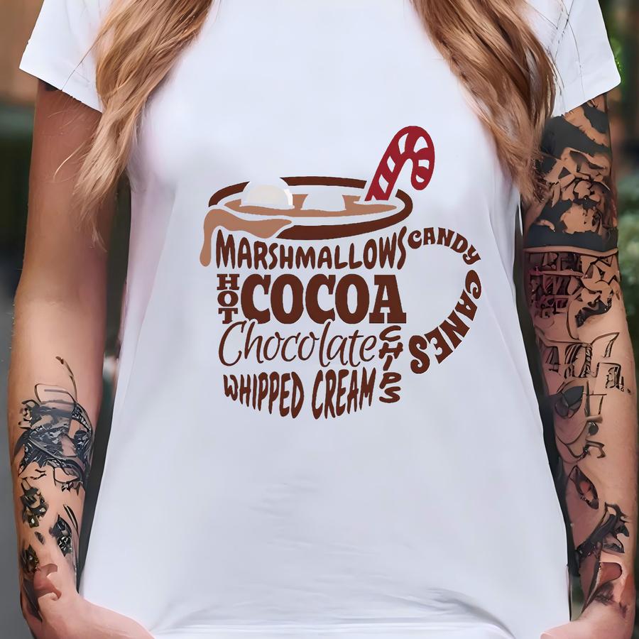 Marshmallows Hot Cocoa Hot Chocolate Chips Whipped Cream Candy Cans Shirt, Christmas Snacks, Christmas Shirt, Merry Christmas,christmas Gift T-shirt