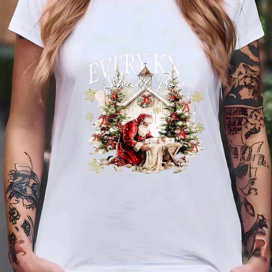 Every Knee Shall Bow Shirt, Christmas Nativity Scene Shirt, Religious Christmas Shirt, Santa Claus Christmas Shirt, Jesus Christian Shirt T-shirt