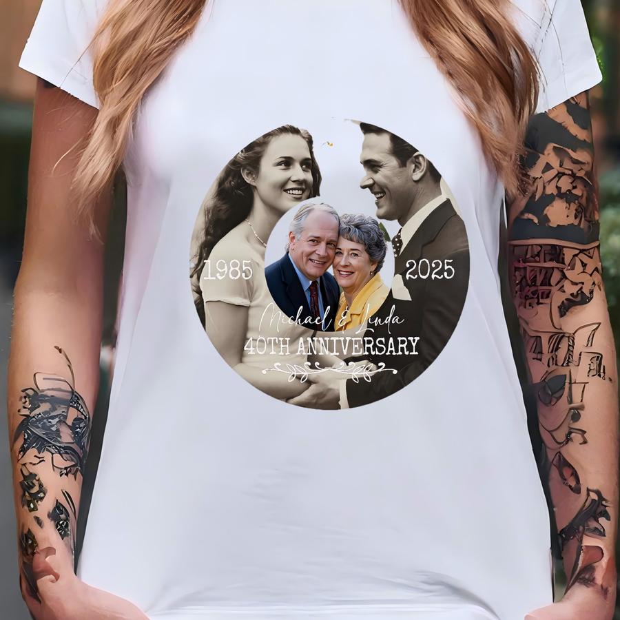 Personalized 40th Wedding Anniversary Ornament, Custom Then And Now Photo Gift For Couple, Unique Keepsake For Parents Or Friends T-shirt