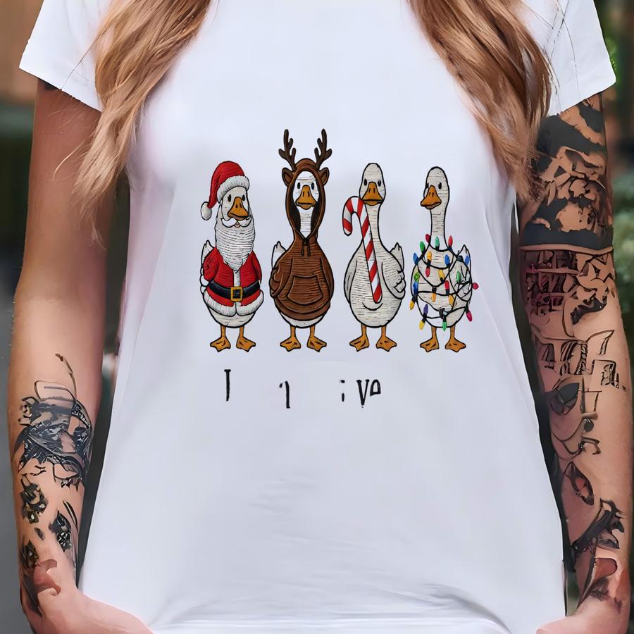 Just A Festive Goose Christmas Sweatshirt, Funny Goose Xmas Crewneck, Santa Reindeer Lights Bird Gift T-shirt