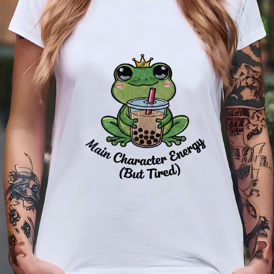 Main Character Energy But Tired Sweatshirt, Funny Frog Boba Crewneck, Cute Princess Frog Meme Gift T-shirt