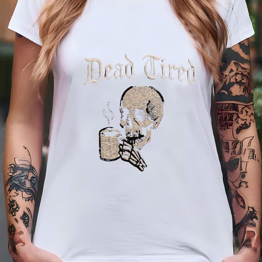 Dead Tired Sweatshirt, Skull Coffee Shirt, Goth Grunge Aesthetic, Tired Af Gift, Skeleton Crewneck, Dark Humor Sweater, Spooky T-shirt