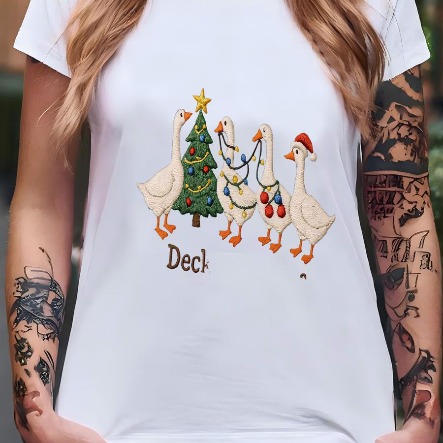 Deck The Honks Christmas Sweatshirt, Goose Holiday Tree Hoodie, Funny Xmas Goose Gift, Festive Bird Tee, Caroling T-shirt