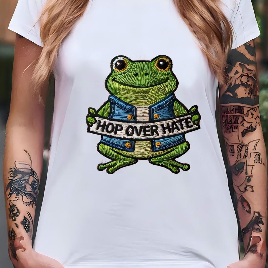 Hop Over Hate Frog Dad Hat, Cute Cottagecore Aesthetic Wash Cap, Positive Message Frog Hat, Mental Health Gift T-shirt