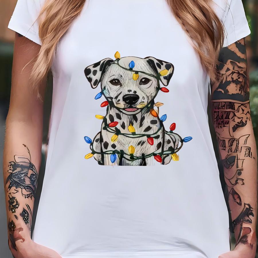 Dalmatian Dog Christmas Lights Sweatshirt, Cute Pet Portrait Holiday Hoodie, Dog Lover Crewneck Sweater, Dog Mom Xmas Gift T-shirt
