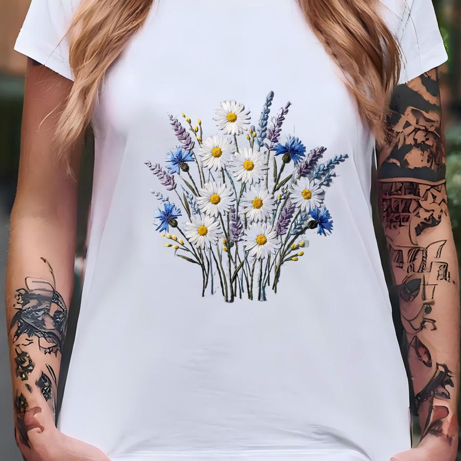 Large Wildflower Bouquet Sweatshirt, Corower Daisy Lavender Floral Crewneck, Meadow Flower Y T-shirt