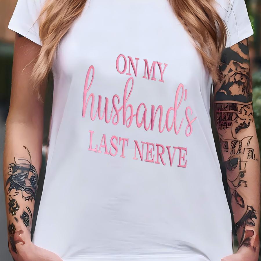 On My Husbands Last Nerve Sweatshirt, Sarcastic Sassy Shirt, Funny Wife Shirt, Funny Gift For Bride, Gift For Mom T-shirt