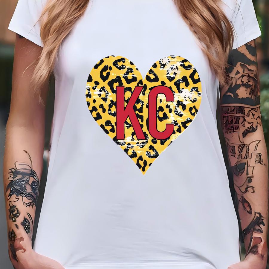 Kansas City Shirt, Leopard Kc Heart Shirt, Kansas City Tshirt, Womens Kansas City Tee, Kansas City Shirts For Women, Kc Heart Sweatshirt T-shirt