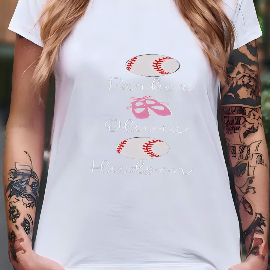 Dance And Baseball Mom Shirt Personalized Mama Tee Custom Kids Name Shirt Gift For Baseball And Dance Mom T-shirt