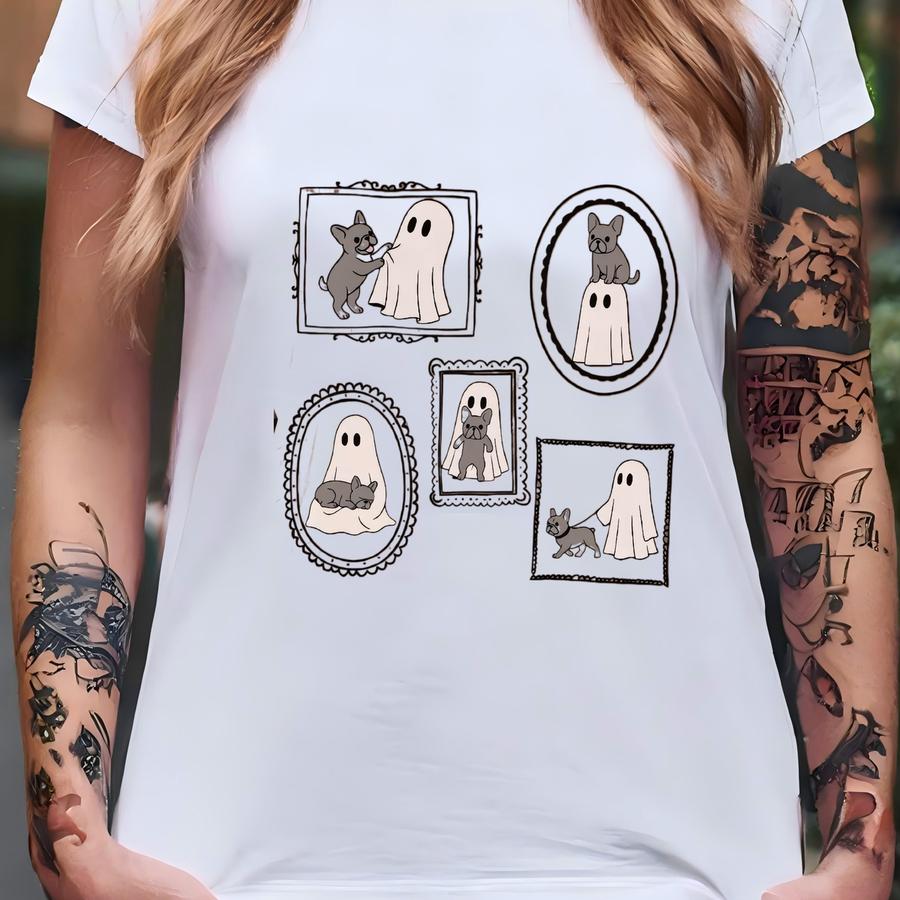 Grey French Bulldog Ghost Shirt Halloween Frenchie Tee Spooky Season Dog Lover Gift Cute Ghost Dog Tshirt T-shirt