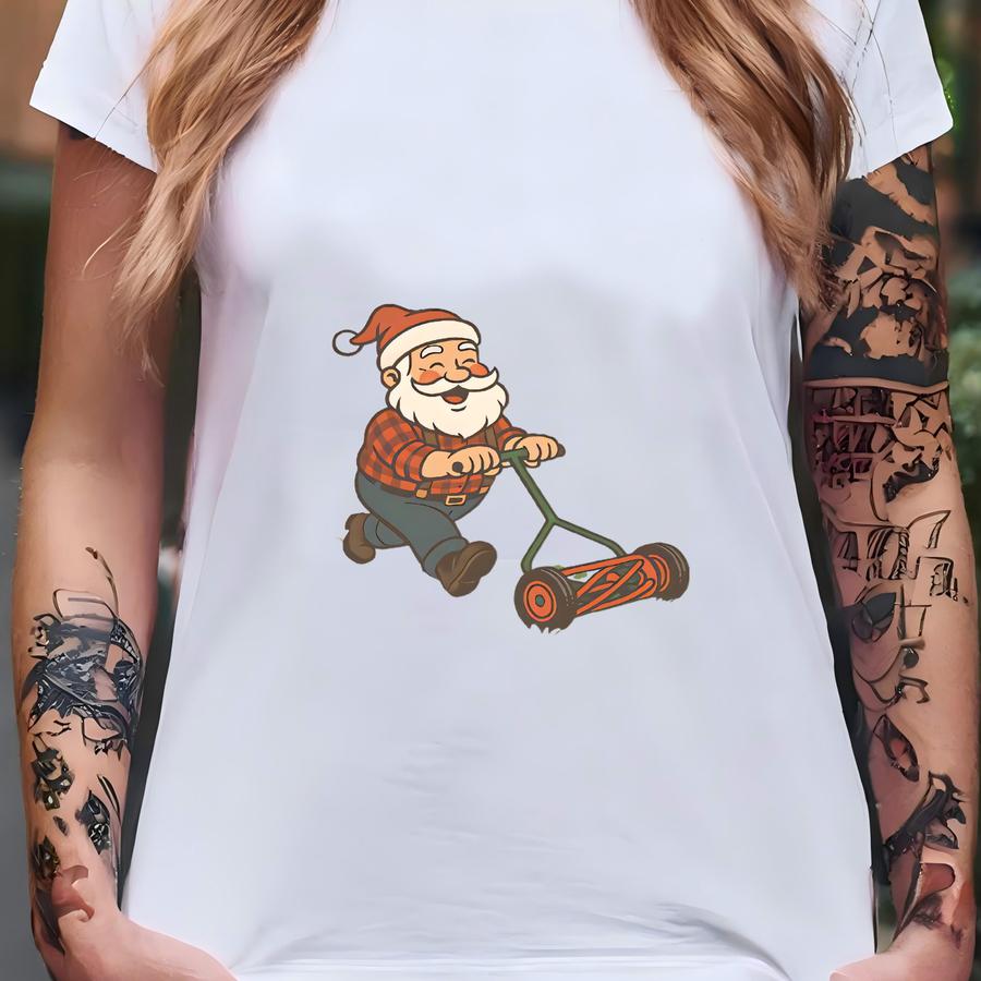 Funny Santa Christmas Shirt Mowing Makes Me Reel Jolly Gift For Him Holiday Lawn Care Tee White Elephant T Shirt Dad Gift T-shirt