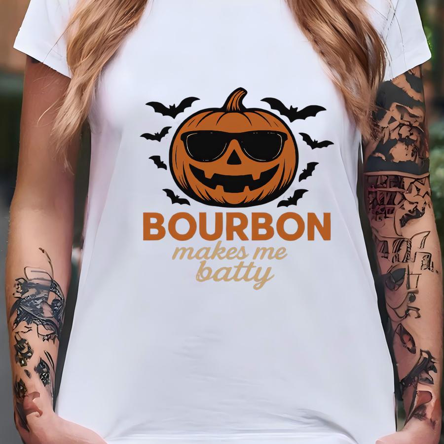 Funny Halloween Bourbon Shirt Bourbon Makes Me Batty Pumpkin Jack O Lantern Bats Tee Fall Gift Boozy Drinking T Shirt T-shirt