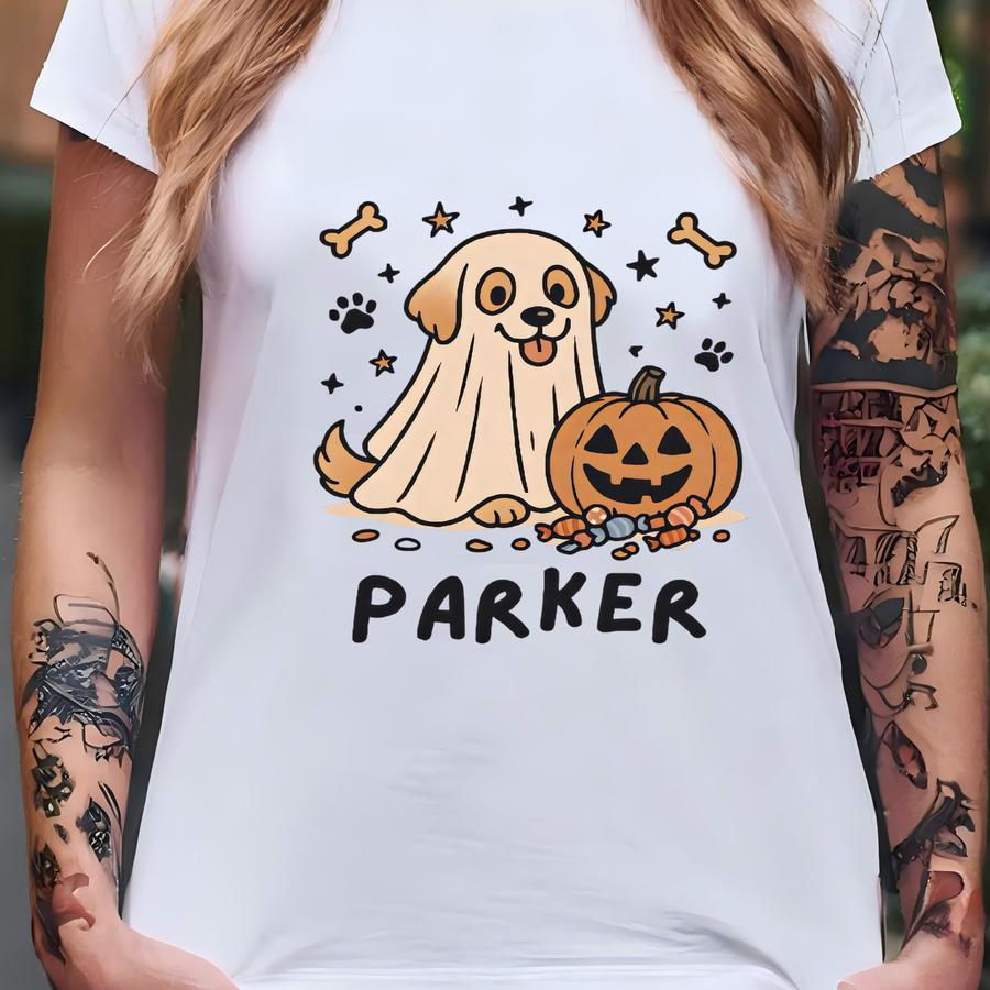 Personalized Toddler Halloween Shirt Custom Dog Ghost Shirt For Kids Cute Spooky Season Tee With Name Jack O Lantern Trick Or Treat Gift T-shirt