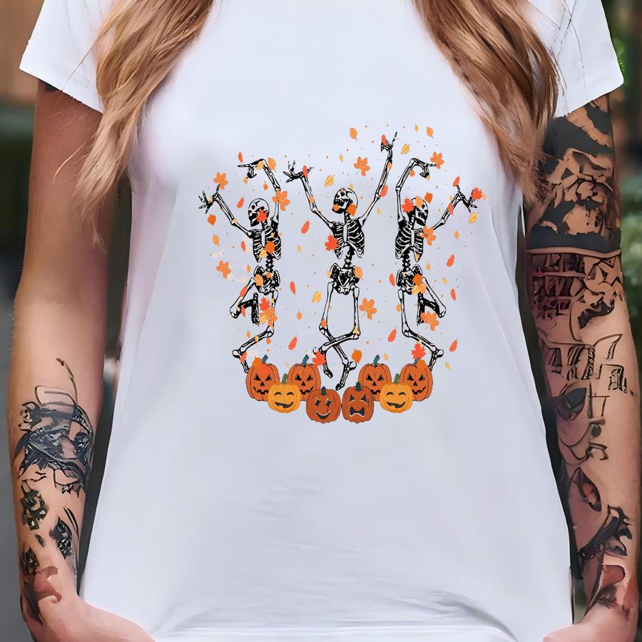 Funny Halloween Skeleton Sweatshirt: Dancing Skeletons Pumpkins T-shirt