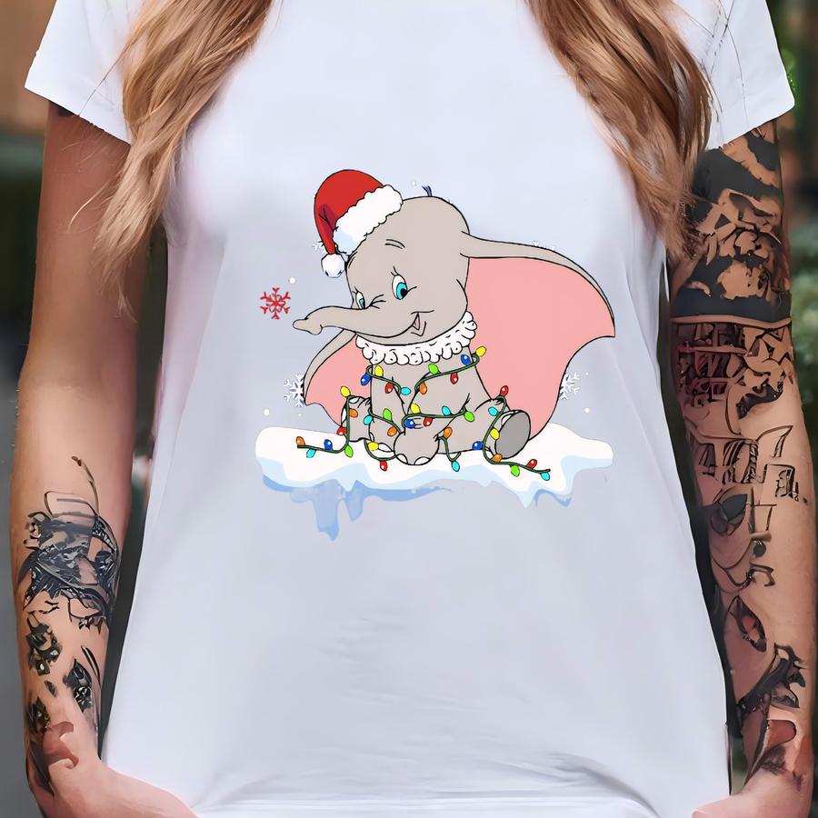 Dumbo Christmas Light Shirt, Cute Dumbo Flying Elephant Christmas Party Tee, Land Tee, Xmas Party Tee, Gift For All T-shirt