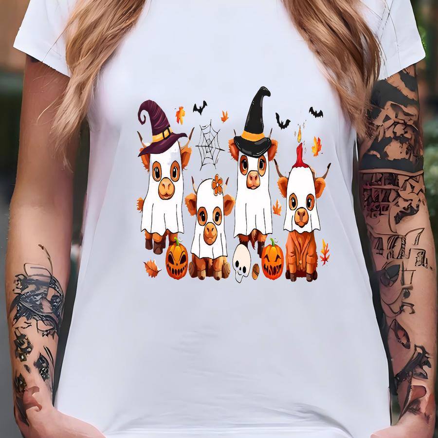 Highland Cow Sweatshirt, Halloween Shirt, Halloween Animals, Funny Highland Cow Tee, Cow Lover Gift, Spooky Cow Shirt, Ghost Shirt For Gift T-shirt