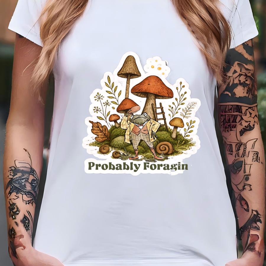 Frog Foraging Mushroom Sticker: Cottagecore Toad, Forest Decal T-shirt