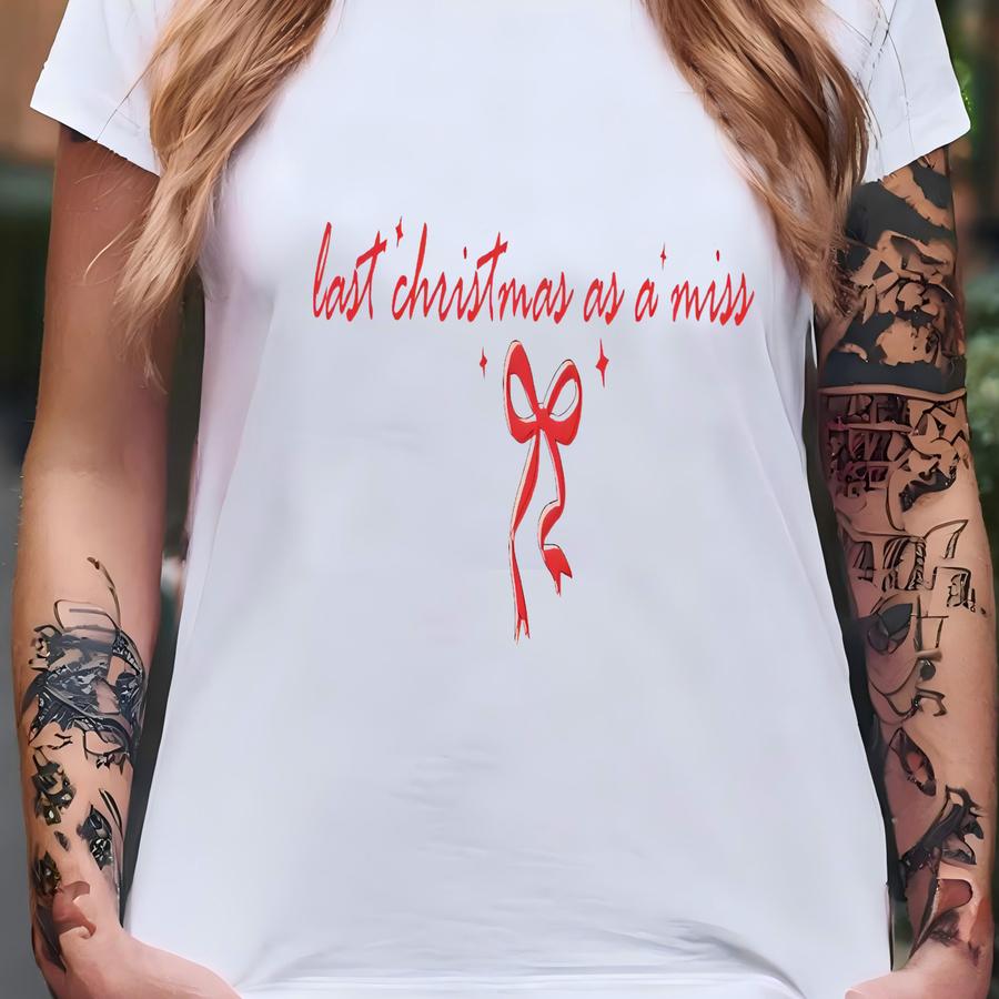 Last Christmas As A Miss Shirt, Christmas Bride Shirt, Red Bow Holiday Tee, Christmas Gift For Bride, Ss0430 T-shirt