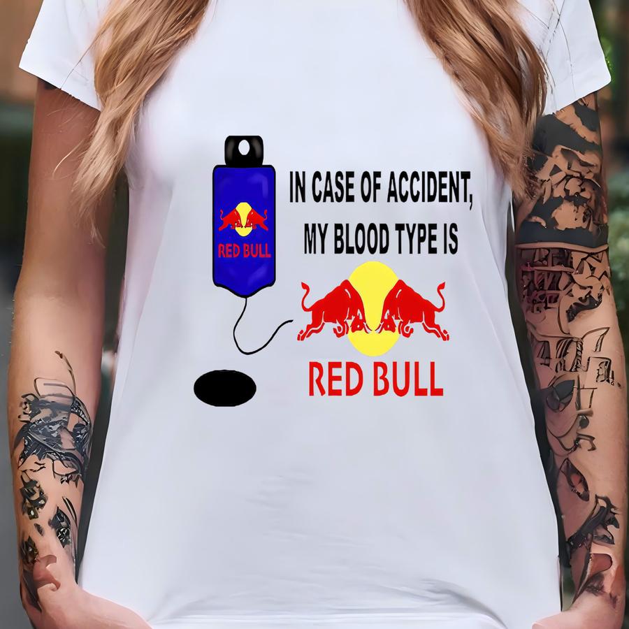 In Case Of Accident My Blood Type Is Redbull Sweatshirt, Funny Energy Drink Humor Hoodie, Bold Statement Sweatshirt, Caffeine Lover Joke T-shirt