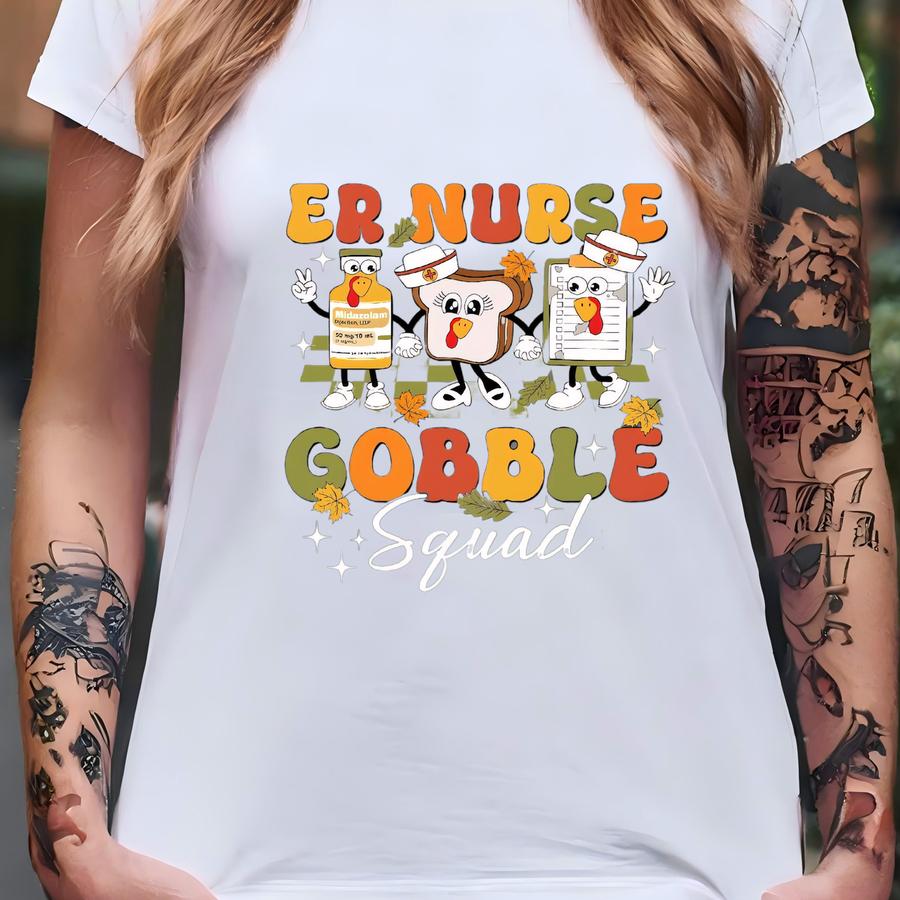 Er Nurse Gobble Thanksgiving Shirt, Thankful Er Nurse Sweatshirt, Icu Nurse Thanksgiving Hoodie,nurse Fall Vibes Tee,rn Nurse Thankful T-shirt