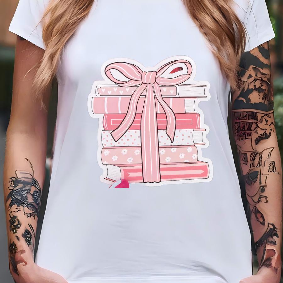 Pink Book Stack Sticker | Pink Book Stack Decal | Book Aesthetic| Decals For Bookworm | Bookish | Kindle | Laptop | Girly Gifts T-shirt