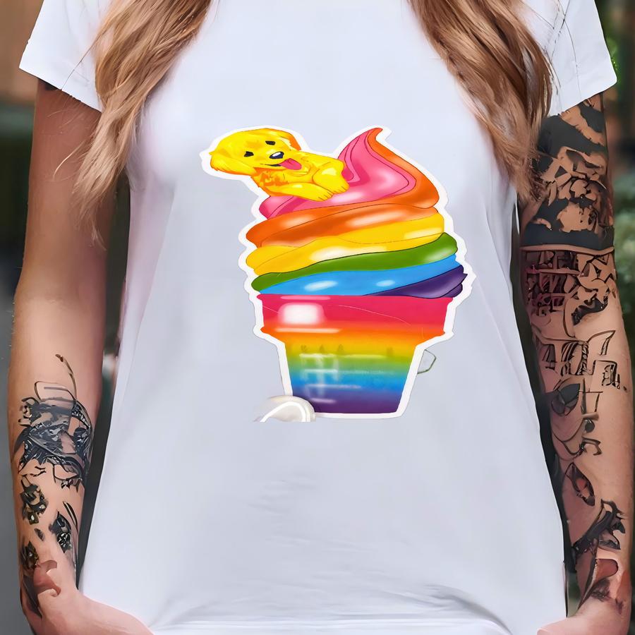 Golden Dog Rainbow Ice Cream Cone Sticker | Golden Dog Rainbow Ice Cream Cone | Vintage Rainbow Sticker | Kindle Sticker T-shirt
