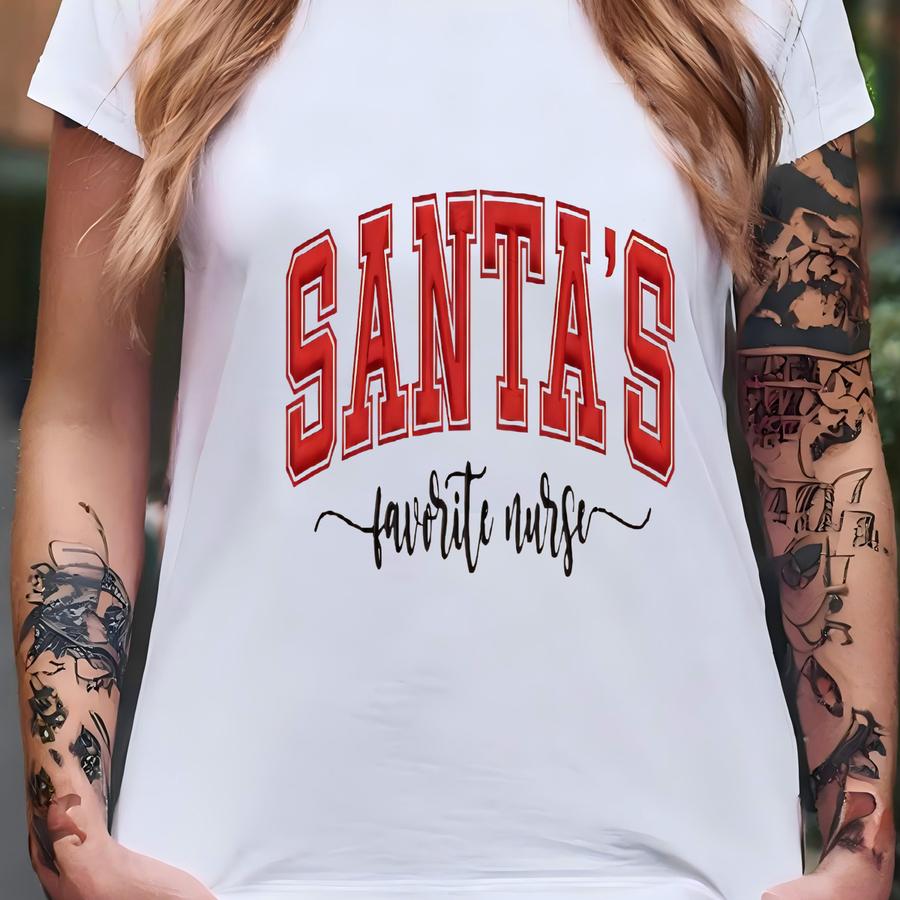 Personalized Santa's Favorite Nurse Sweatshirt, Custom Nurse Name Christmas Shirt, Holiday Medical Hoodie, Nursing Xmas Tee T-shirt