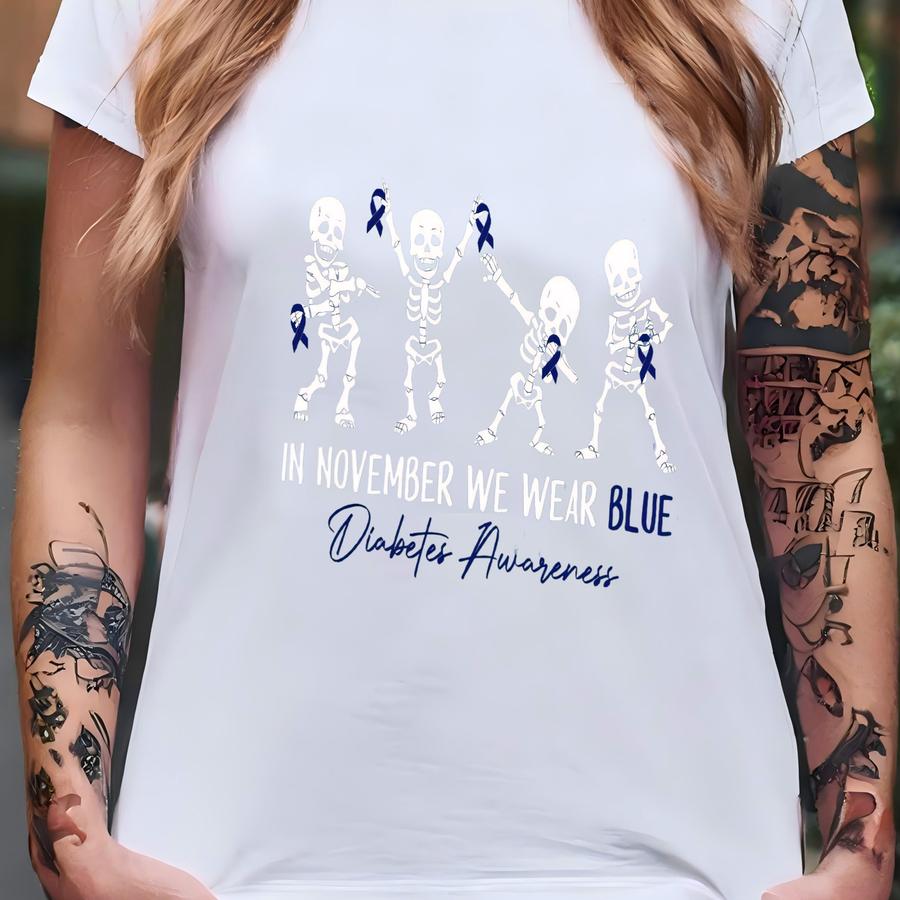 In November We Wear Blue For Diabetes Awareness Shirt, Sugar-free Month Tee For Diabetes Support T-shirt
