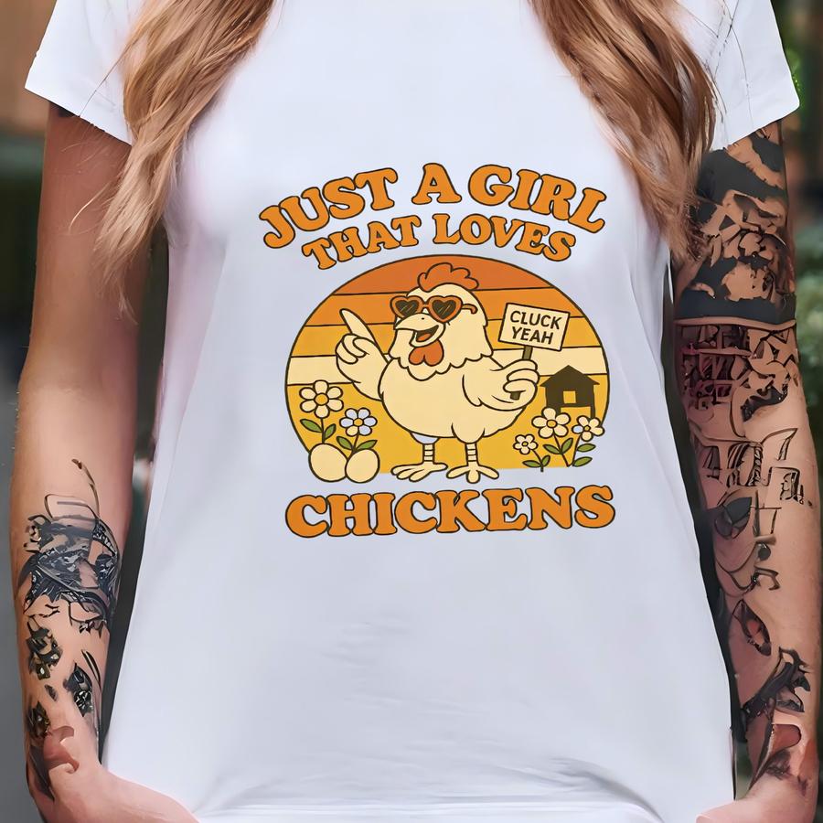 Funny Chicken Lover Hoodie, Just A Girl Tee, Unisex Garment-dyed Shirt, Chicken Lady Top, Farmer Gift For Her T-shirt