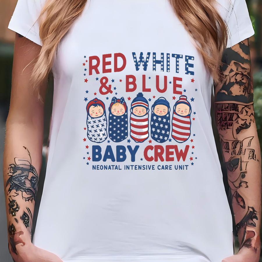 Nicu Nurse 4th Of July Shirt: Red White Blue Baby Crew Tee T-shirt