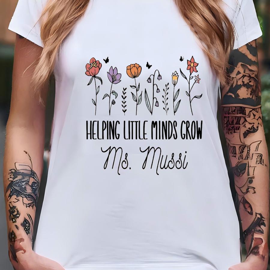 Personalized Teacher Tee: Floral Design, Custom Name T-shirt