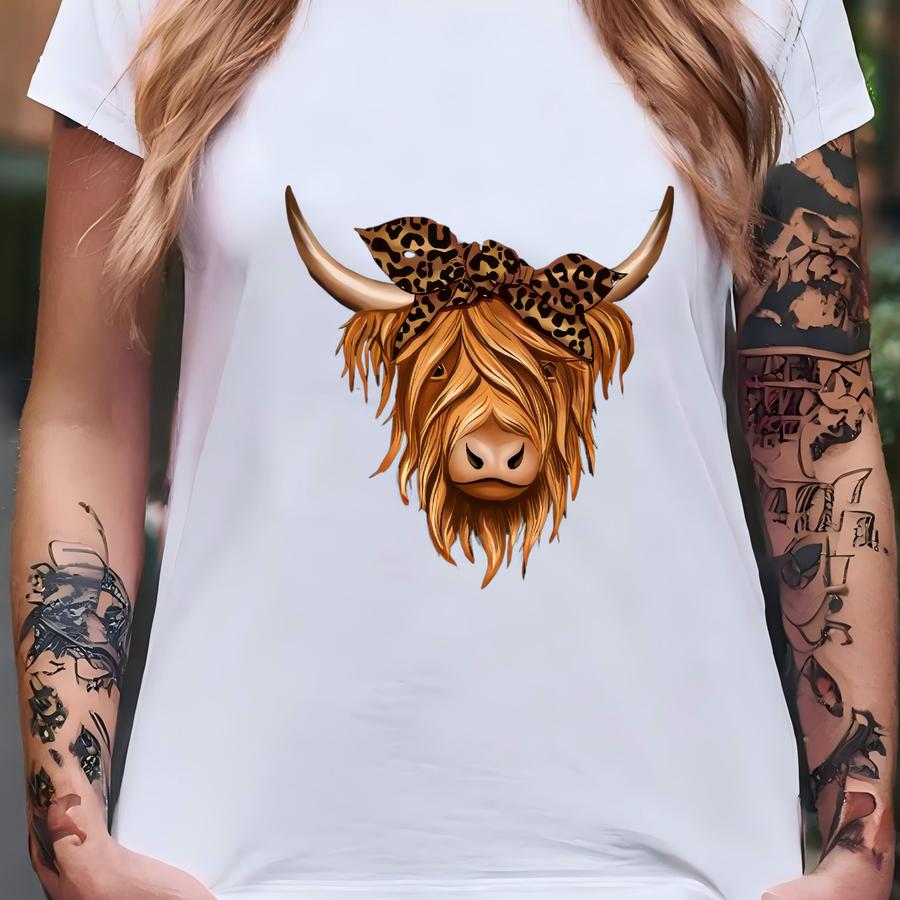 Leopard Boho Highland Cow Hoodie: Animal Lover Farm Tee T-shirt