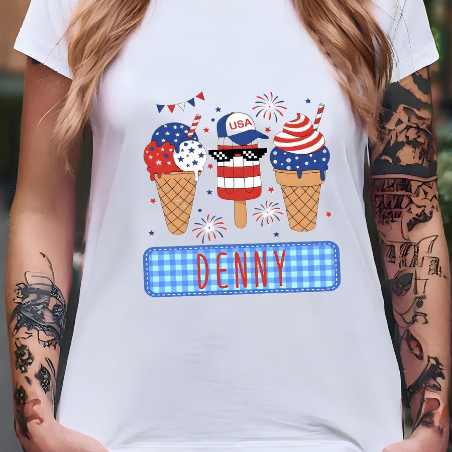 Personalized 4th Of July Kids Hoodie: Patriotic Ice Cream Design T-shirt