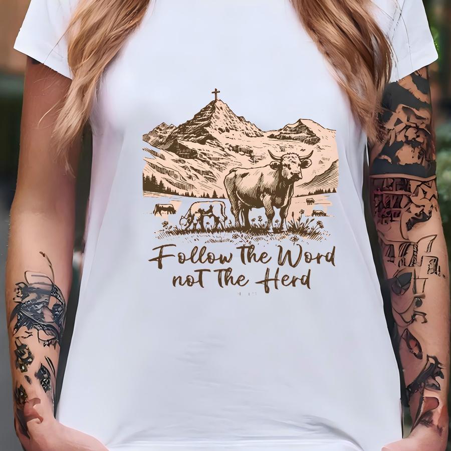 Follow The Word Not The Herd Shirt: Christian Western Cow Tee T-shirt