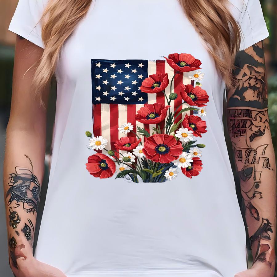 Floral American Flag Tee: 4th Of July Patriotic Shirt T-shirt