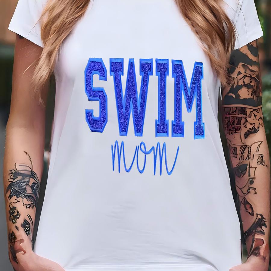 Personalized Swim Mom Sweatshirt | Custom Team Crewneck | Swim Mom Bow Shirt | With Kids Name On Sve | Swim Applique Crew T-shirt