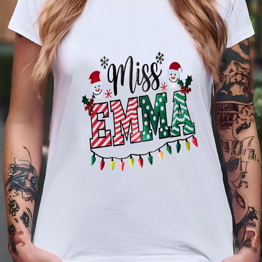 Personalized Christmas Teacher Sweatshirt, Xmas Teacher Name Y Shirt, Teacher Santa Tee, Christmas Teacher Gift T-shirt