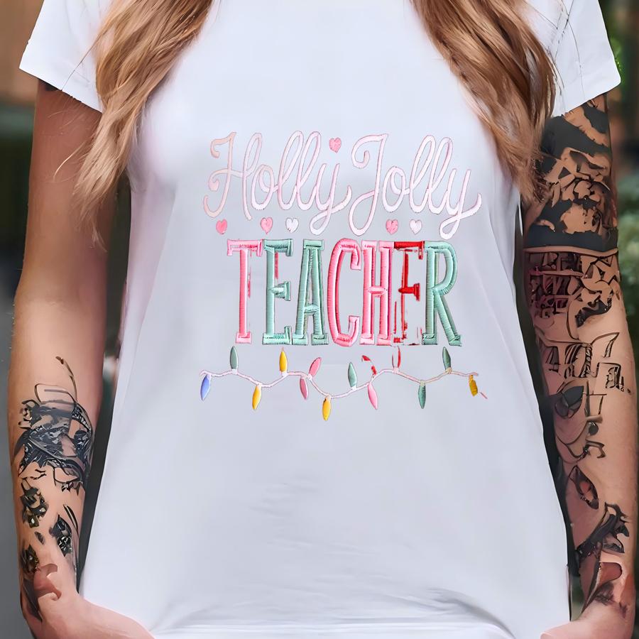 Holly Jolly Teacher Sweatshirt, Teacher Christmas Y Shirt, Festive Teacher Holiday T-shirt