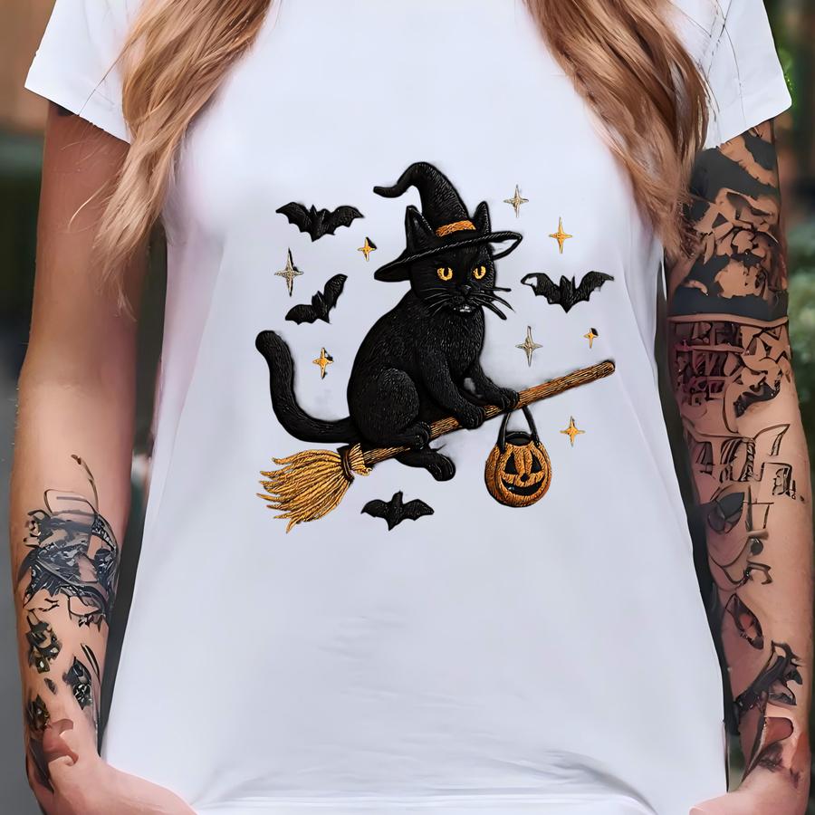 Halloween Black Cat Sweatshirt, Spooky Cat Witch Y Shirt, Dark Humor Bat Tee T-shirt