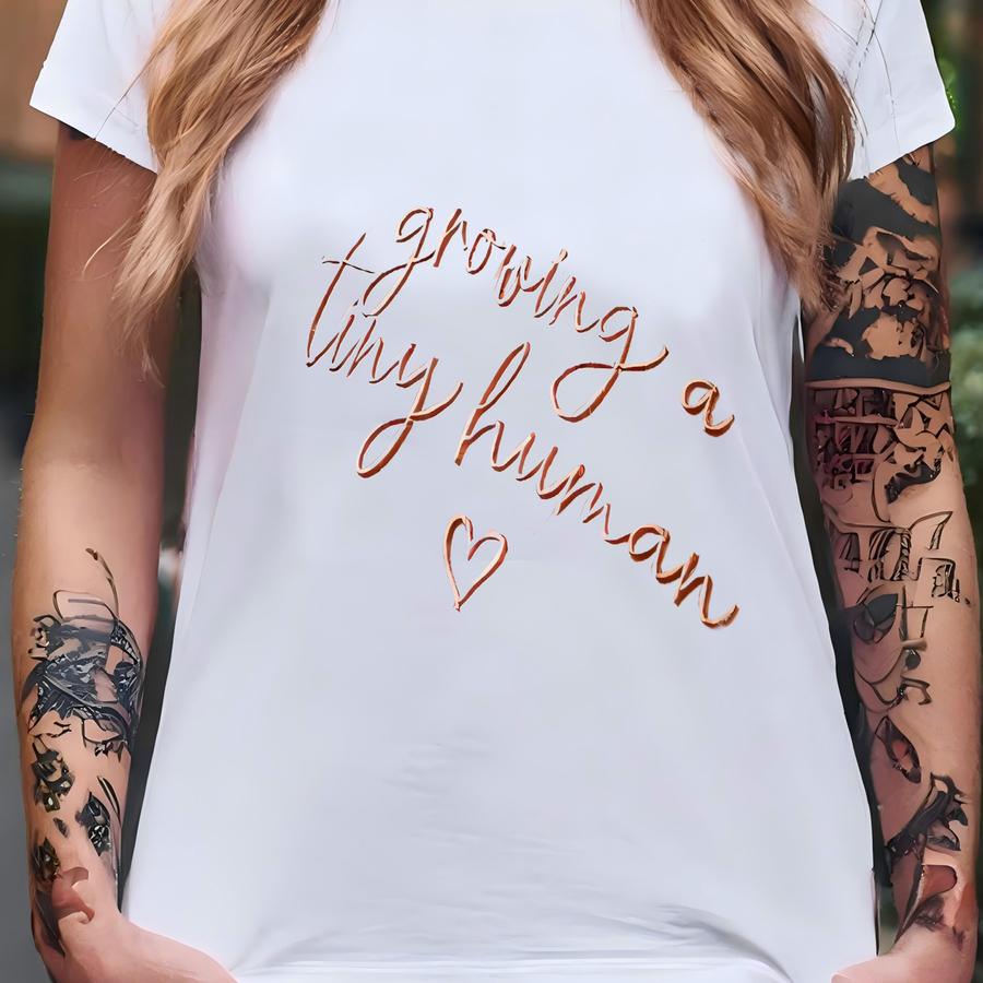 Growing A Tiny Human Tone-on-tone Sweatshirt, Baby Bump Y Shirt, Mom To Be Tee, Christmas Pregnancy Announcement Gift T-shirt