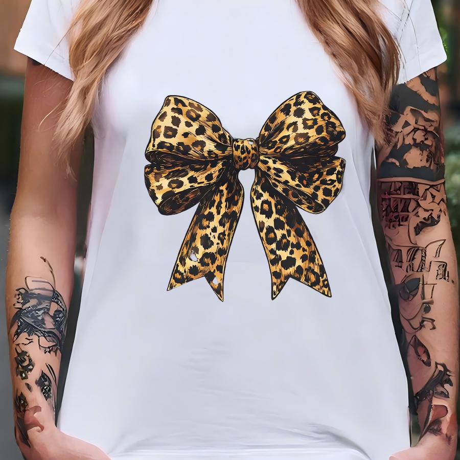 Leopard Coquette Bow Shirt, Coquette Shirt, Leopard Ribbon Shirt, , Gift For Her, Coquette Shirt, Ribbon Shirt T-shirt