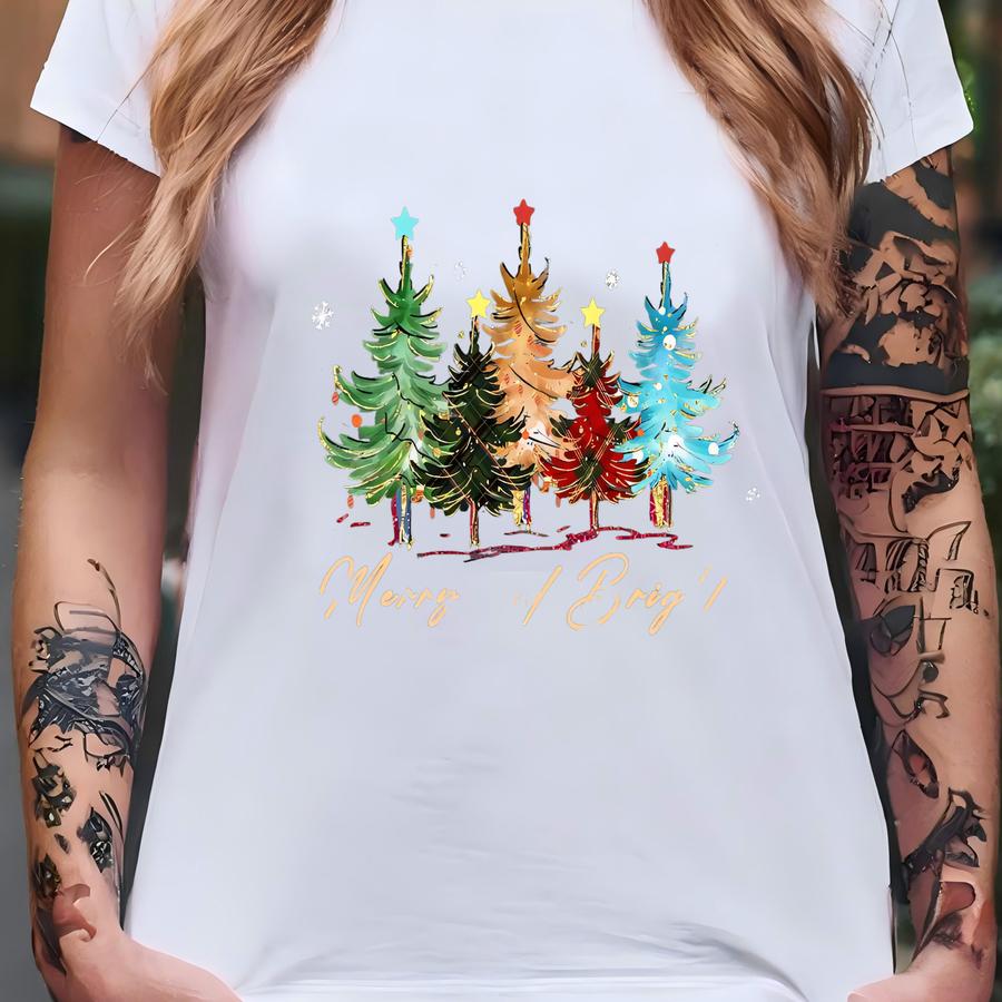 Merry And Bright Trees Sweatshirt, Women's Christmas Sweatshirt, Womans Holiday Shirt,christmas Gift,chic Winter Shirt ,christmas Tree Shirt T-shirt