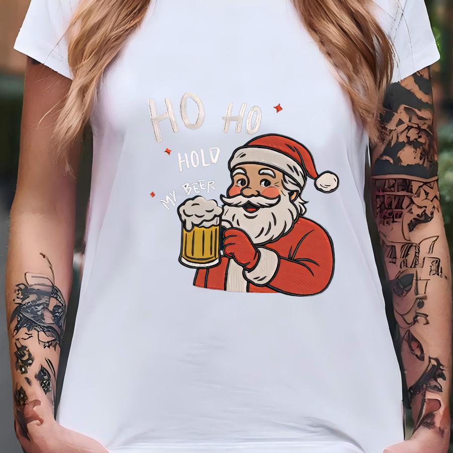 Ho Ho Hold My Beer Santa Sweatshirt: Funny Christmas Drunk Santa Claus Holiday Sweatshirt T-shirt