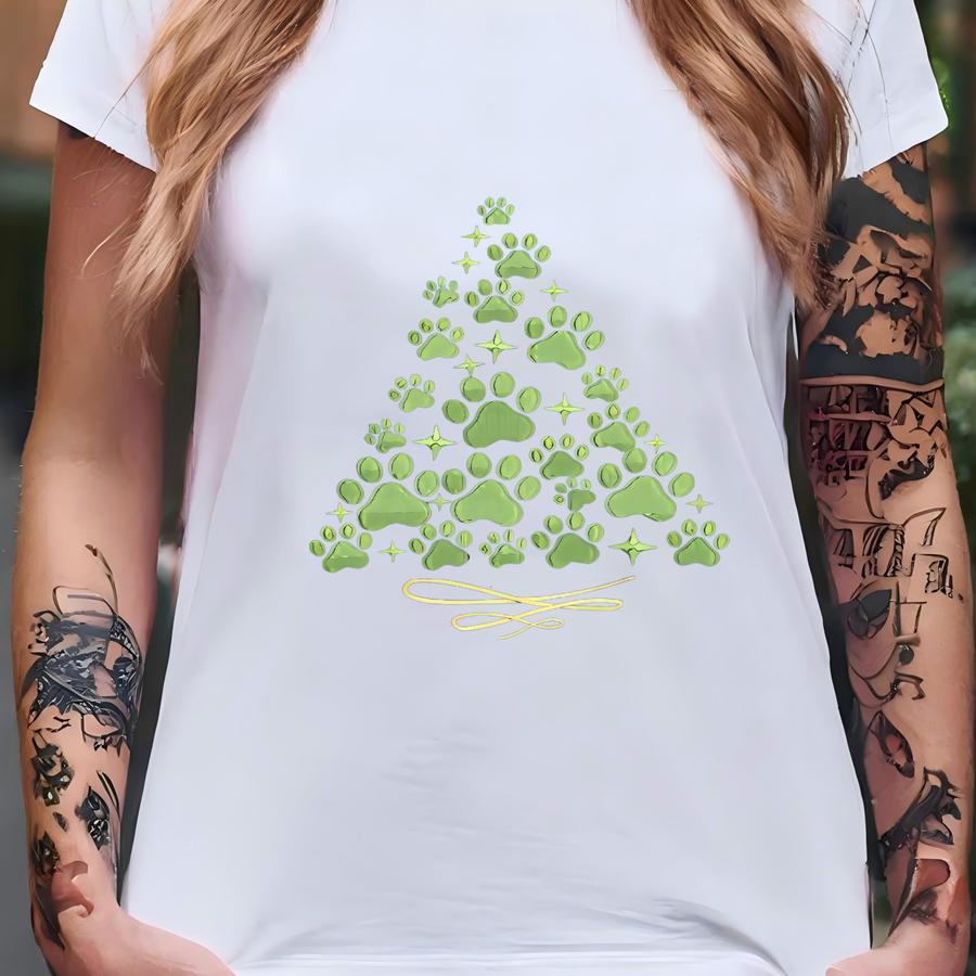 Dog Paw Print Christmas Tree Sweatshirt: Dog Lover Holiday Gift | Cute Dog Paw Sweatshirt T-shirt
