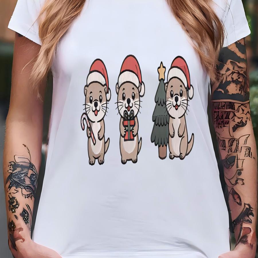 Otter Christmas Sweatshirt: Cute Otters With Santa Hats Sweatshirt T-shirt