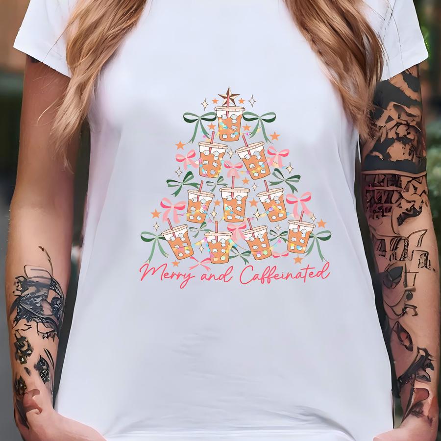 Merry Caffeinated Christmas Tree Sweatshirt: Coffee Lover Gift T-shirt