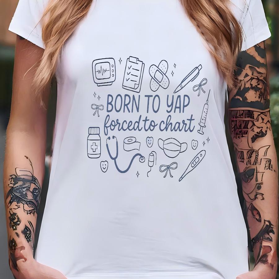 Funny Nurse Tee, Born To Yap, Forced To Chart, Rn Gift T-shirt