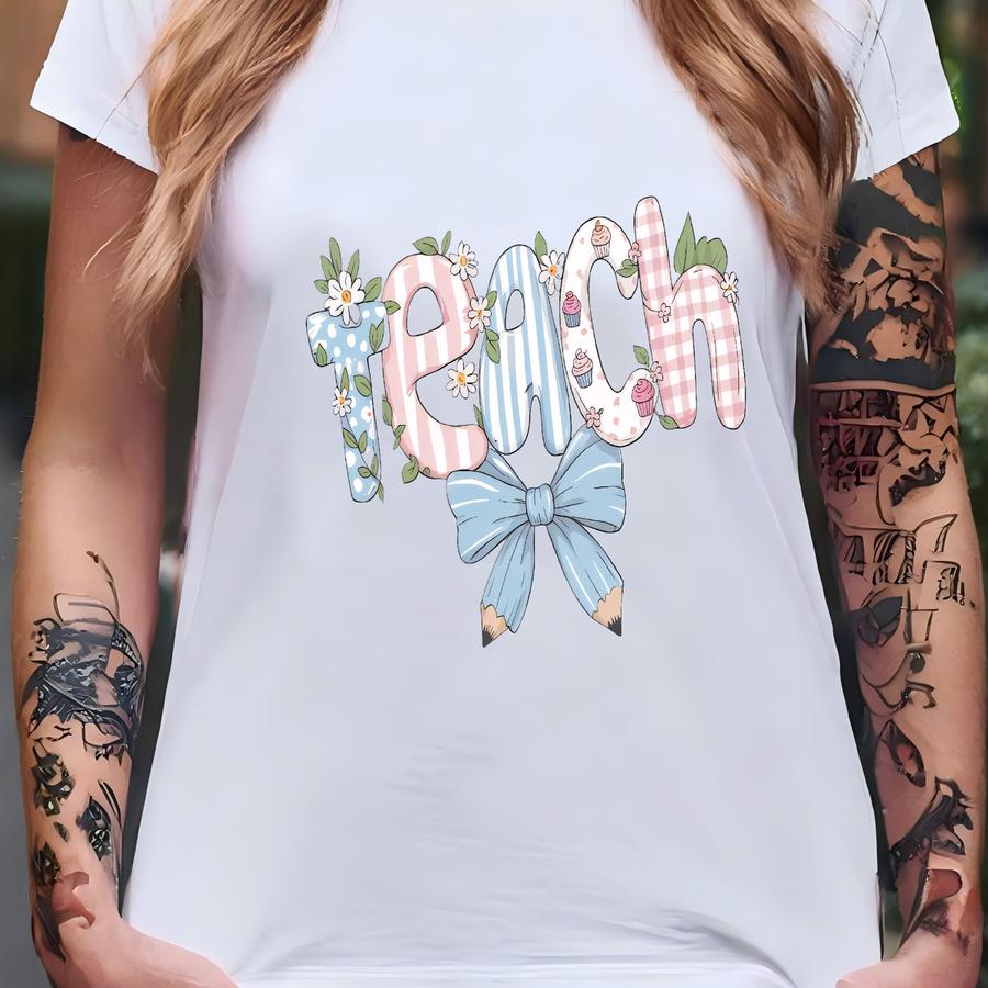 Floral Teacher Hoodie, Coquette Style T-shirt
