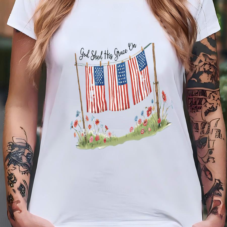 God Shed His Grace Shirt: Religious Patriotic Tee T-shirt