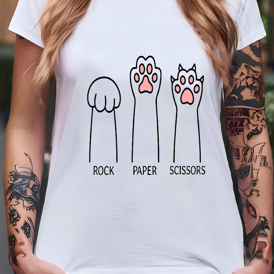 Funny Cat Paw Sweatshirt: Rock Paper Scissors Unisex Crewneck T-shirt